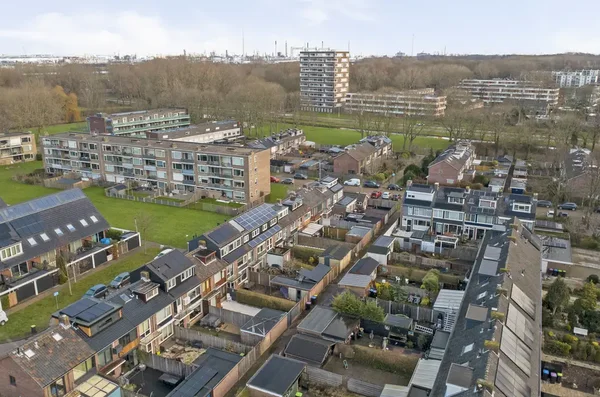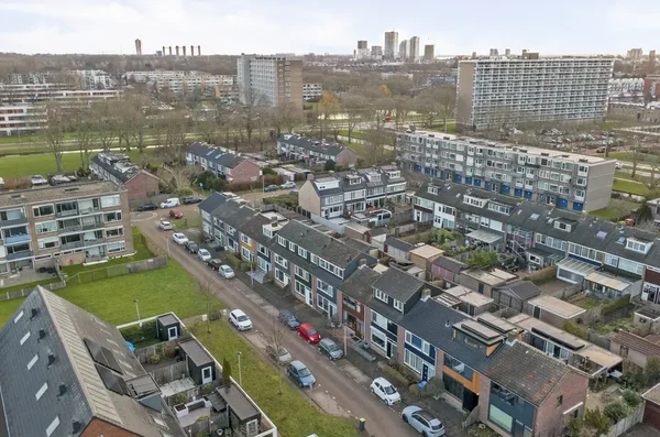 Deze woning, een eengezinswoning uit 1960, heeft een nokverhoging en biedt moderne voorzieningen, waaronder zonnepanelen en airconditioning. Gelegen in een groene wijk, op loopafstand van het Hartelpark, winkelcentrum 't Plateau en basisscholen, en slechts 4 minuten van de snelweg. De begane grond heeft een doorzonwoonkamer van meer dan 7 meter diep met grote ramen. De keuken is voorzien van inbouwapparatuur. Op de eerste verdieping zijn 3 slaapkamers, waarvan één met balkon, en een badkamer met toilet, douche en wastafel. De tweede verdieping, vergroot door de nokverhoging, biedt een ruime vierde slaapkamer, met daarnaast ruimte voor de wasmachine en cv-ketel. De achtertuin ligt op het zuidoosten en bevat een schuur en overkapping.