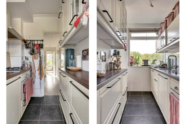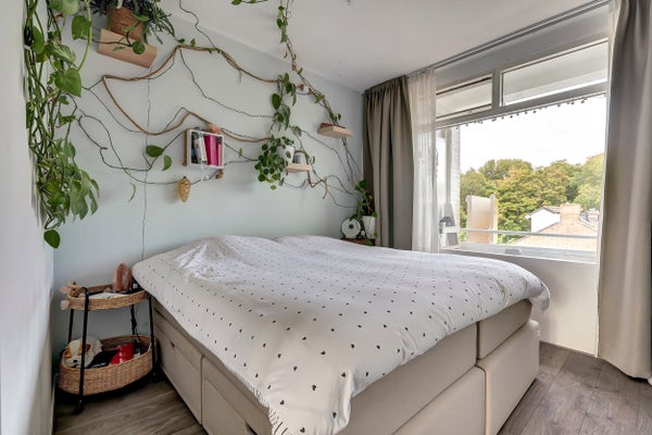 - De portiekflat heeft een woonoppervlakte van 56 m² en beschikt over 3 kamers, waarvan 2 slaapkamers;