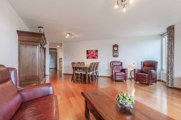 - De galerijflat heeft een woonoppervlakte van 87 m² en beschikt over 3 kamers, waarvan 2 slaapkamers;