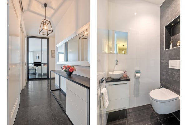 • Van een ontspannen bad tot een energieke start onder de Sunshower: deze moderne badkamer is uw privé wellness-resort, dag in dag uit.