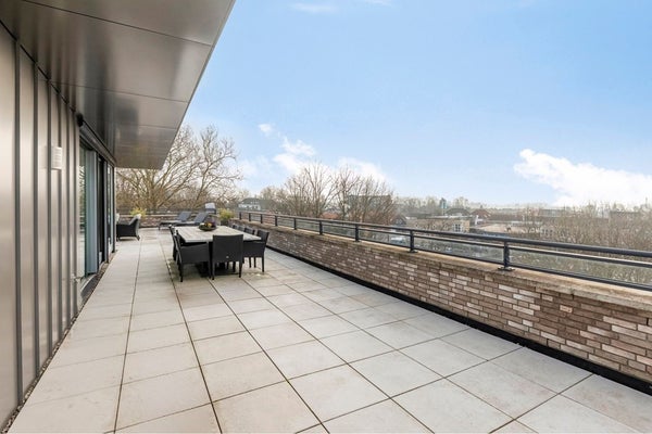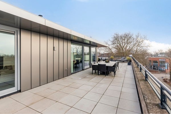Hier voelt elke dag als vakantie: van rustige ochtenden met het eerste zonlicht tot lange avonden onder de sterren. Stap het royale rooftop-terras van ca. 165 m² op en ervaar het ultieme gevoel van vrijheid en ruimte. Gelegen op het zonnige westen, biedt dit terras het perfecte decor voor elke buitenactiviteit: ontspannen in een comfortabele loungehoek, een borrel organiseren met vrienden of gewoon genieten van het buitenleven en het adembenemende uitzicht over de stad en de horizon.