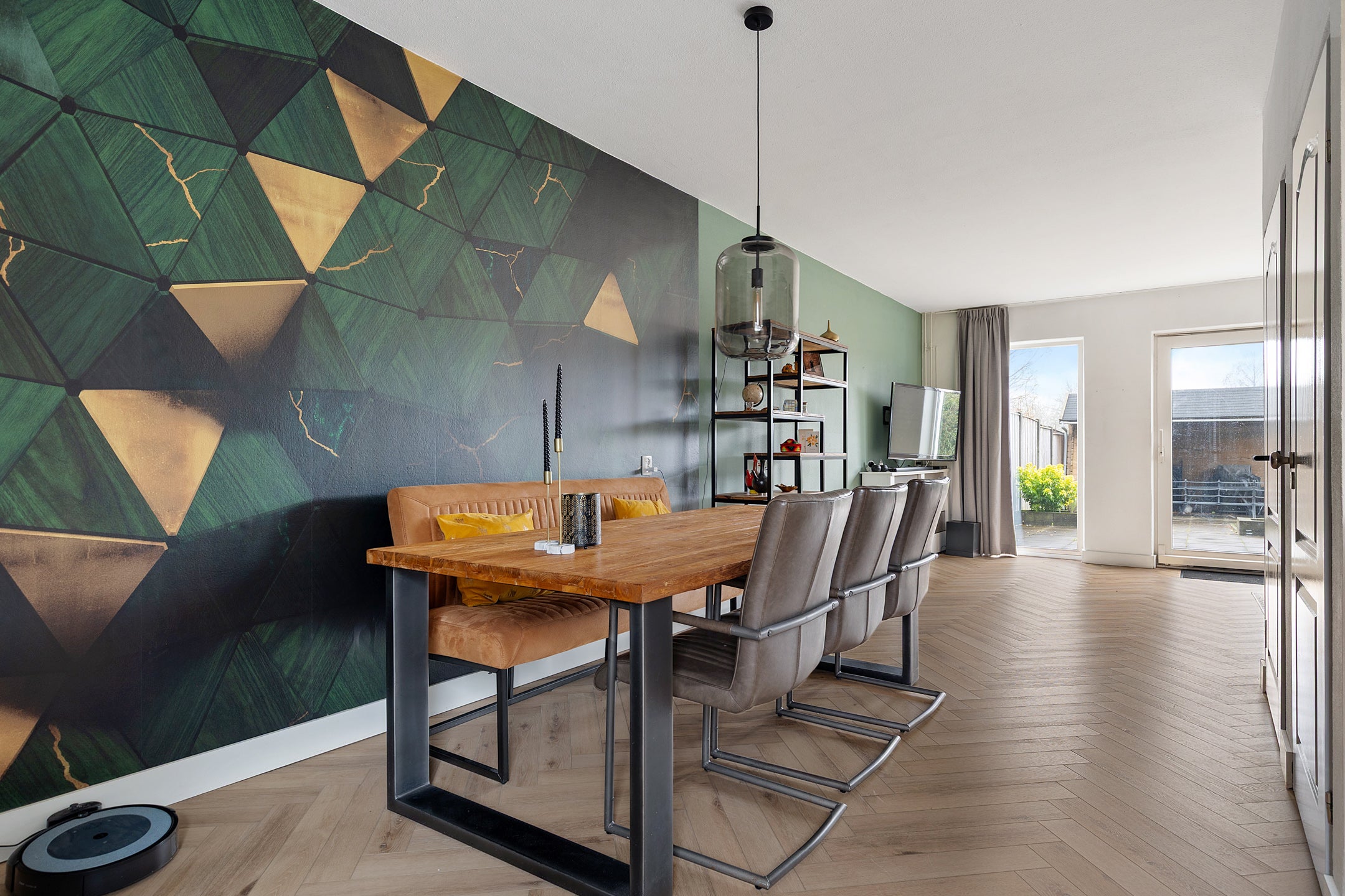 De indeling begint op de begane grond met een entree die toegang biedt tot de berging en de L-vormige woonkamer met een moderne visgraad PVC vloer. De hoeken van de open keuken zijn uitgerust met moderne apparaten. Op de eerste verdieping zijn er drie slaapkamers en een luxe badkamer met inloopdouche en bubbelbad. De tweede verdieping bevat een zolderruimte met opbergruimte en een vierde slaapkamer. De zonnige achtertuin heeft een ruim terras en accentueert de privacy van de woning.