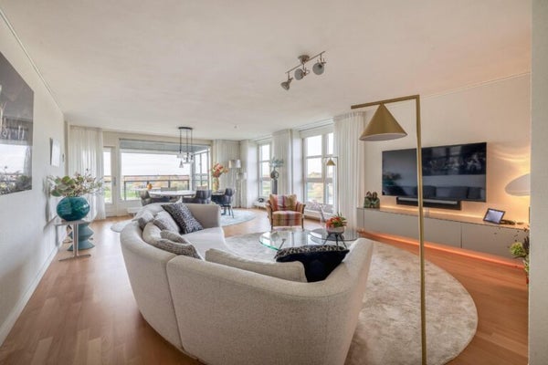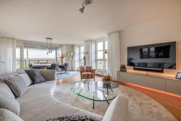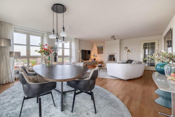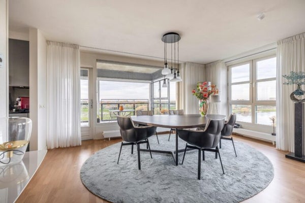 Dit unieke penthouse aan de Maas in Tegelen omvat twee verdiepingen met een woonoppervlakte van 155 m² en biedt schitterend uitzicht op de Maas vanuit de woonkamer en hoofdslaapkamer. Het appartement heeft 3 slaapkamers, een woonkamer met open keuken, twee ruime terrassen, een grote badkamer en een sauna. Op de begane grond vind je een inpandige garage en twee parkeerplaatsen. De centrale entree met lift biedt toegang tot de 7e verdieping, waar je een lichte woonkamer met parketvloer en een moderne keuken vindt. De hoofdslaapkamer op de 8e verdieping heeft vaste kasten en biedt toegang tot een royaal terras. De luxe badkamer is uitgerust met een whirlpool en vloerverwarming. Dichtbij het ziekenhuis, scholen en speelmogelijkheden, en het centrum van Venlo is op 15 minuten fietsafstand.