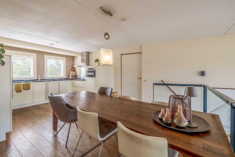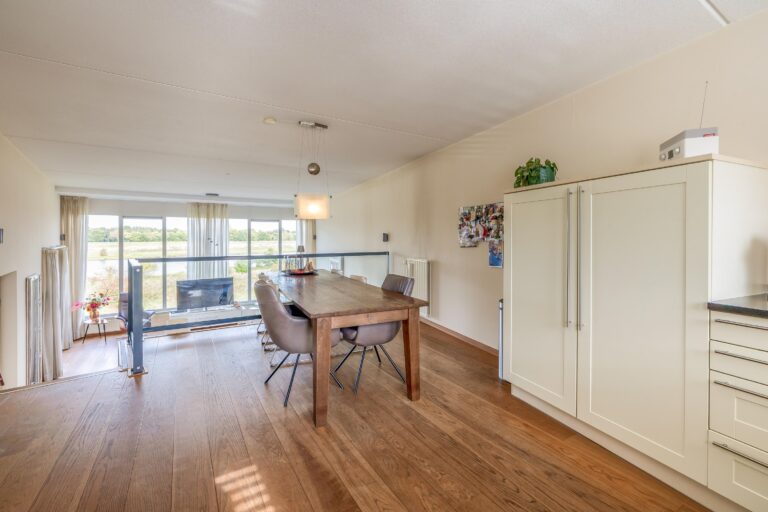 Op een unieke locatie in het Maasveld staat deze royale woning met een adembenemend uitzicht over de Maas en haar uiterwaarden. De woning is speels ingedeeld met verschillende niveaus, waardoor een bijzondere ruimtelijke beleving ontstaat. De grote woonkamer en de ruime keuken bieden volop leefruimte en een prachtig weids uitzicht, met openslaande deuren naar het royale dakterras – een ideale plek om te ontspannen. Met vier, eventueel vijf, slaapkamers, is er voldoende ruimte voor een gezin of een werkruimte. De begane grond heeft een inpandige garage en het huis ligt in een kindvriendelijke buurt, nabij scholen en speeltuintjes. De woning is volledig geïsoleerd, beschikt over airco in de hoofdslaapkamer, vloerverwarming en een ruime zolder die als extra slaapkamer of hobbyruimte kan dienen.