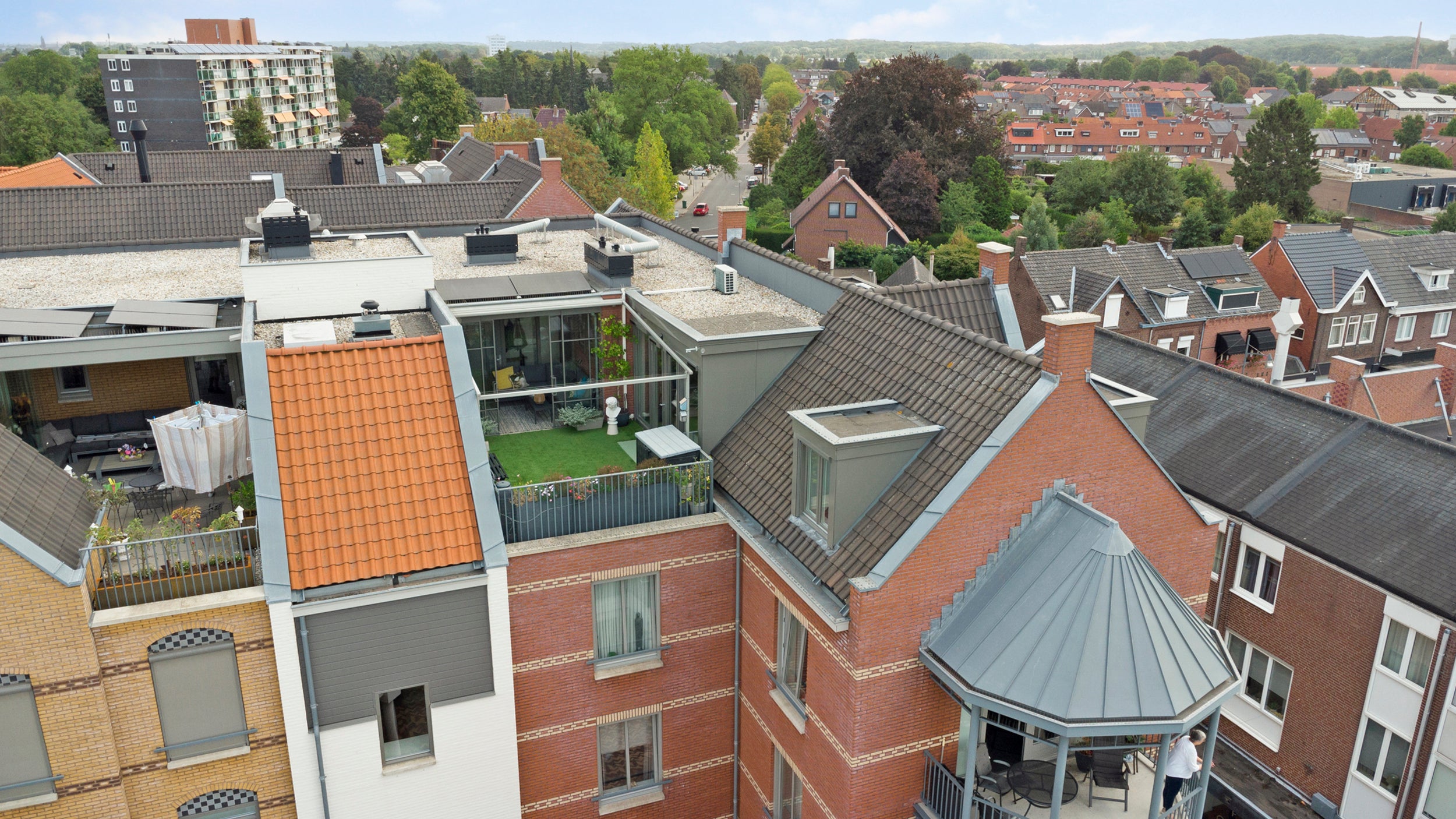 Dit exclusieve penthouse bevindt zich op de vierde verdieping van een schitterend gebouw in het centrum. Met een woonoppervlakte van 177 m² en een inhoud van 592 m³ biedt het appartement een royale open indeling, luxe afwerking en een ongeëvenaard uitzicht. De entree leidt naar een groot dakterras van 38 m², uitgerust met nieuw kunstgras en een elektrisch zonnedak. De slaapkamer, met airco, en de luxe badkamer zijn recent vernieuwd en stralen comfort uit. De open keuken is voorzien van moderne apparatuur, waaronder een inductiekookplaat en Quooker. Dit penthouse is duurzaam met zonnepanelen en beschikt over twee parkeerplaatsen in de kelder. Het is goed geïsoleerd en biedt een prettig woonklimaat.