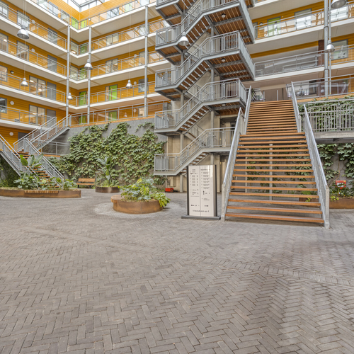 - De galerijflat heeft een woonoppervlakte van 113 m² en beschikt over 3 kamers, waarvan 2 slaapkamers;