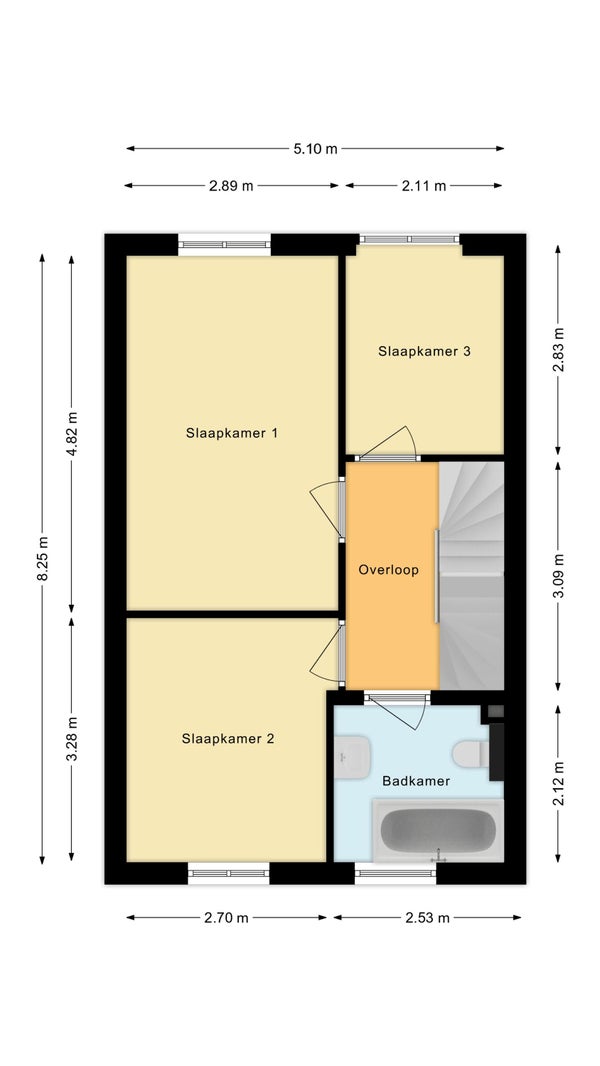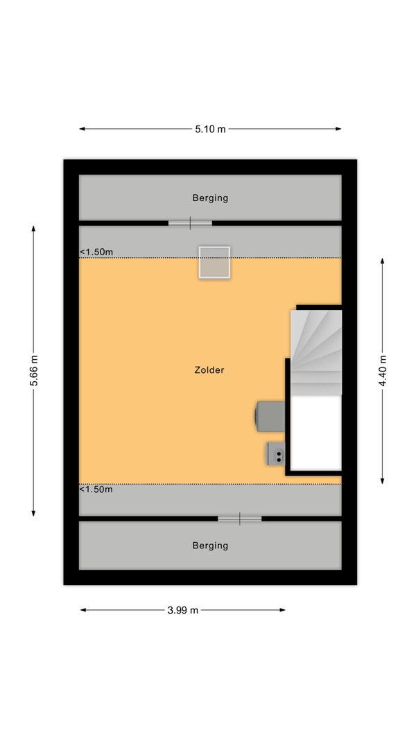 - De galerijflat heeft een woonoppervlakte van 107 m² en beschikt over 5 kamers, waarvan 4 slaapkamers;