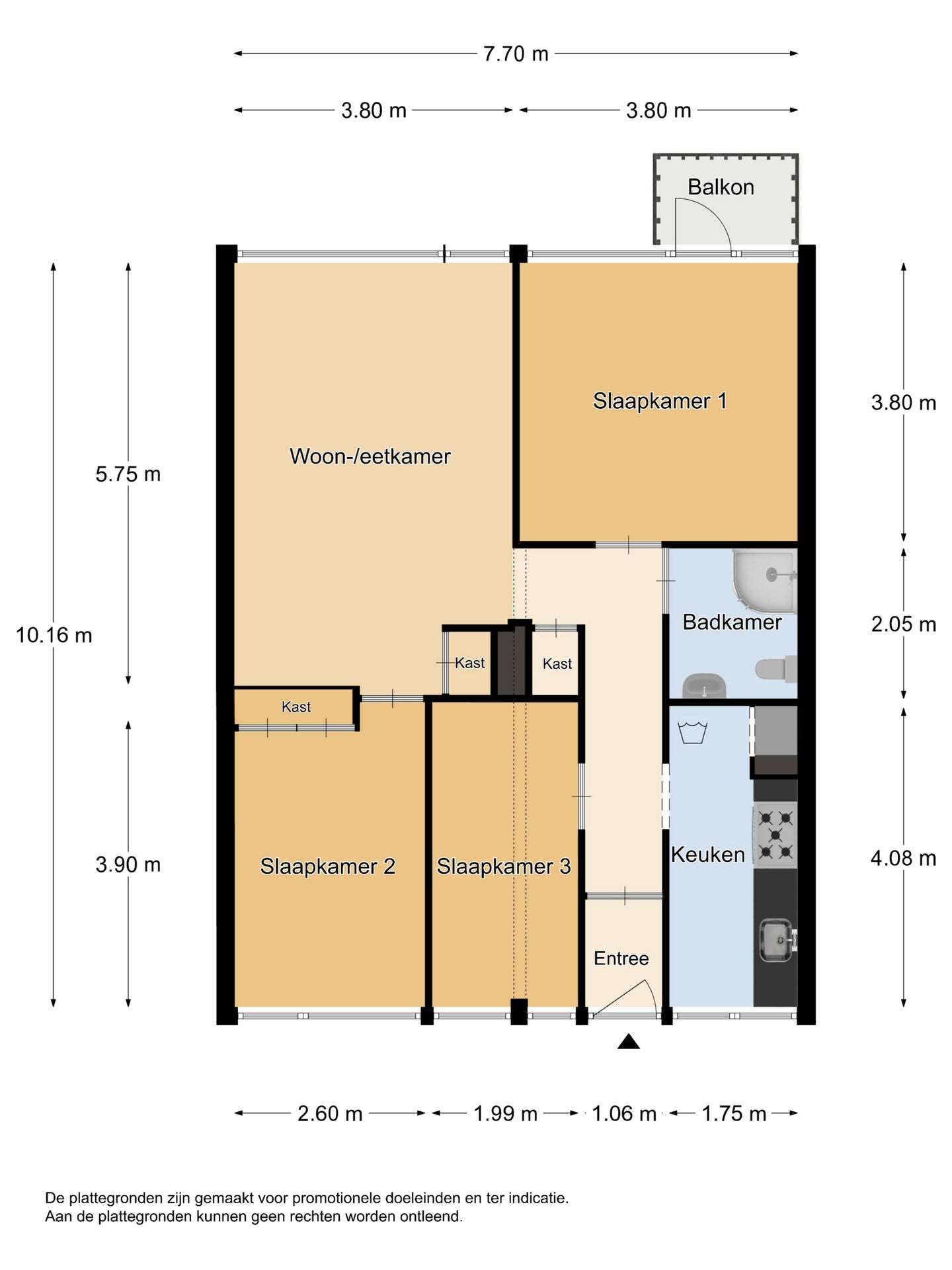 - De galerijflat heeft een woonoppervlakte van 78 m² en beschikt over 4 kamers, waarvan 3 slaapkamers;