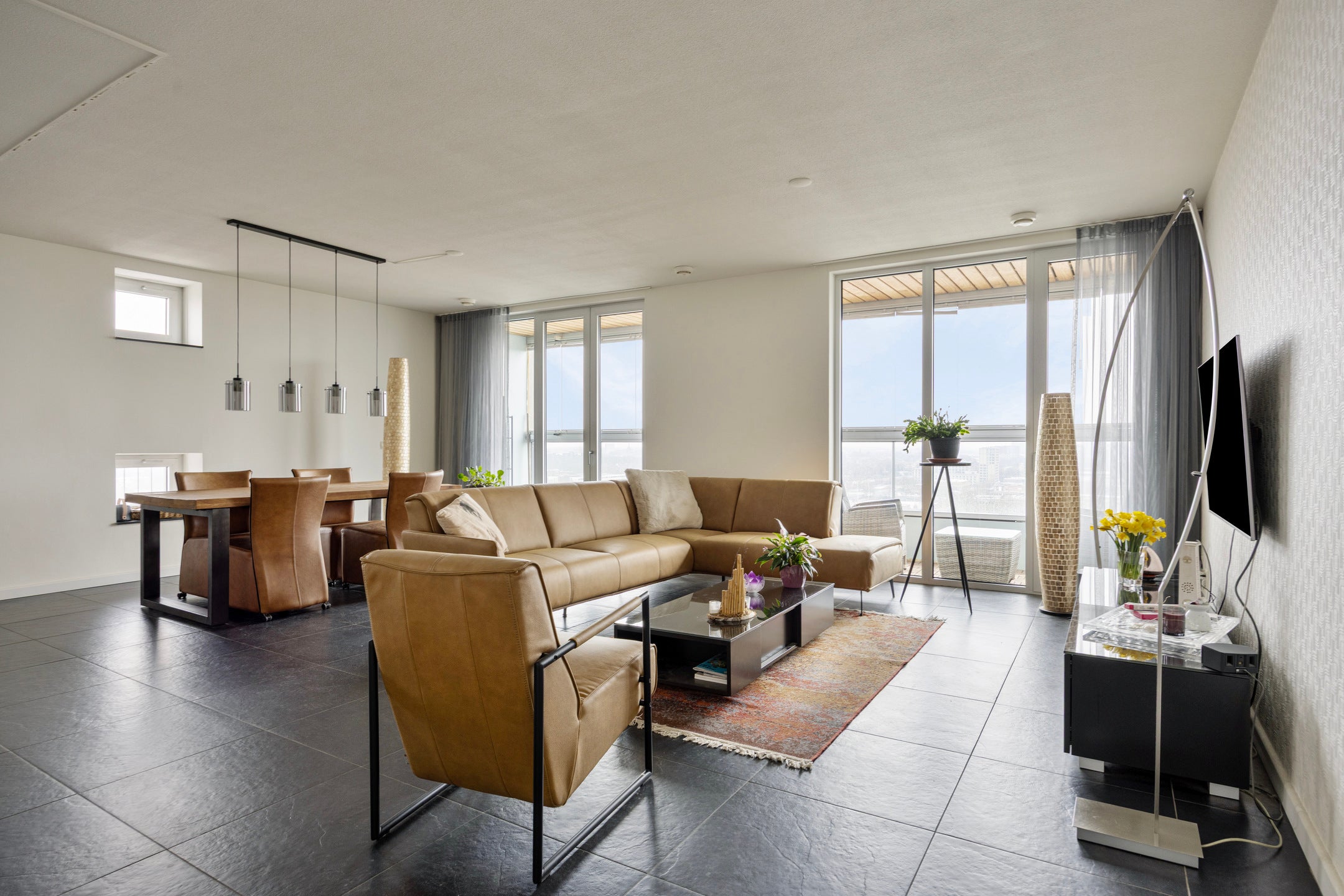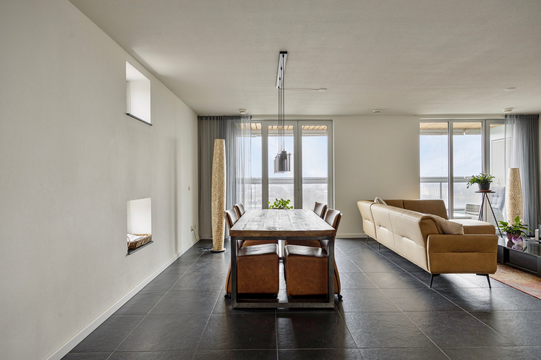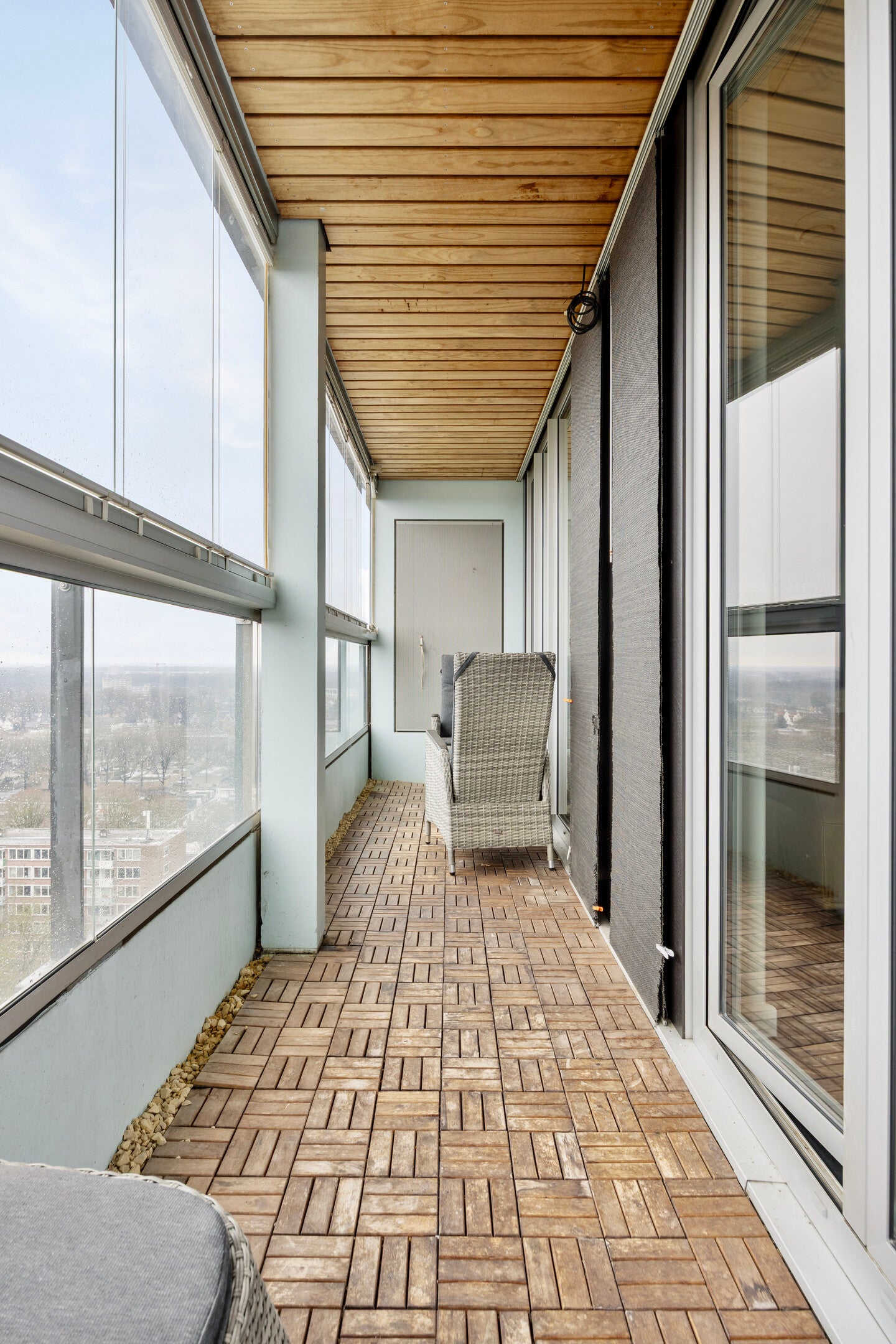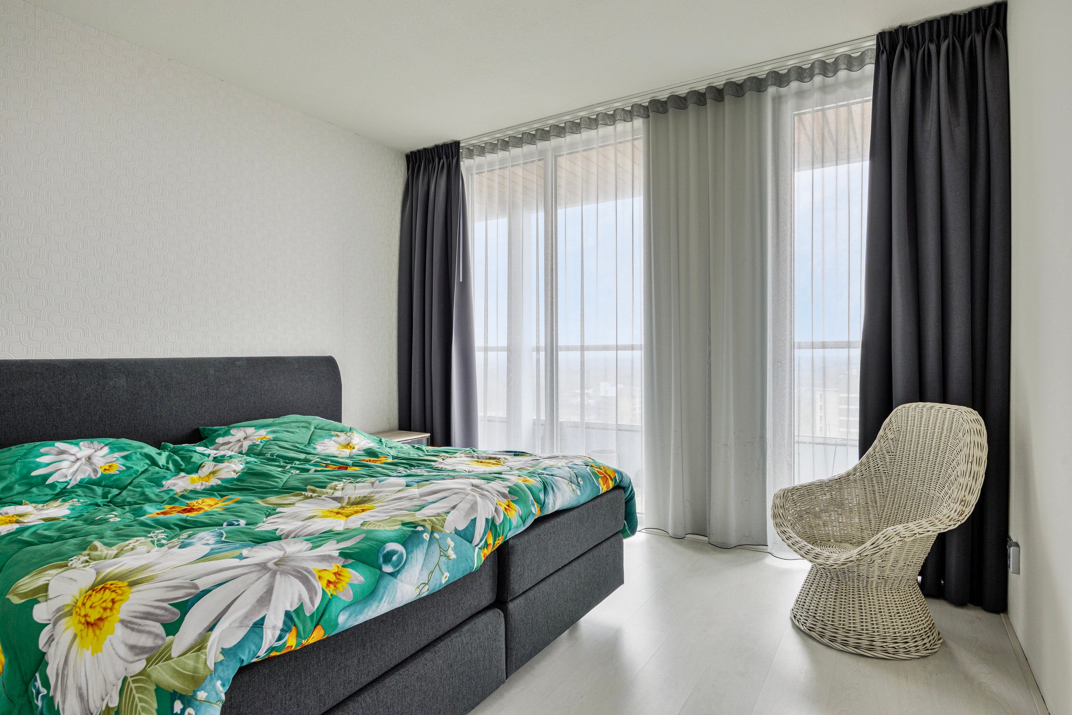 Op de 14e verdieping van het moderne complex aan Professor de Moorplein 546 in Tilburg vind je een ruim, instapklaar appartement van ca. 105 m² met twee slaapkamers en twee balkons. Je geniet van prachtig uitzicht op de stad, met ochtendzon bij het ontbijt en avondzon bij een glas wijn. Het appartement beschikt over een eigen parkeerplaats in de ondergrondse garage en ligt centraal, boven de Albert Heijn en vlakbij het winkelcentrum Westermarkt en het station Tilburg Universiteit. Binnen verwelkomt de hal je in een lichte woonkamer met grote ramen. De halfopen keuken is praktisch ingericht, en beide slaapkamers hebben toegang tot een balkon. De badkamer is voorzien van een inloopdouche en dubbele wastafel. Met een energielabel A en vloerverwarming geniet je hier van comfort en duurzaamheid.