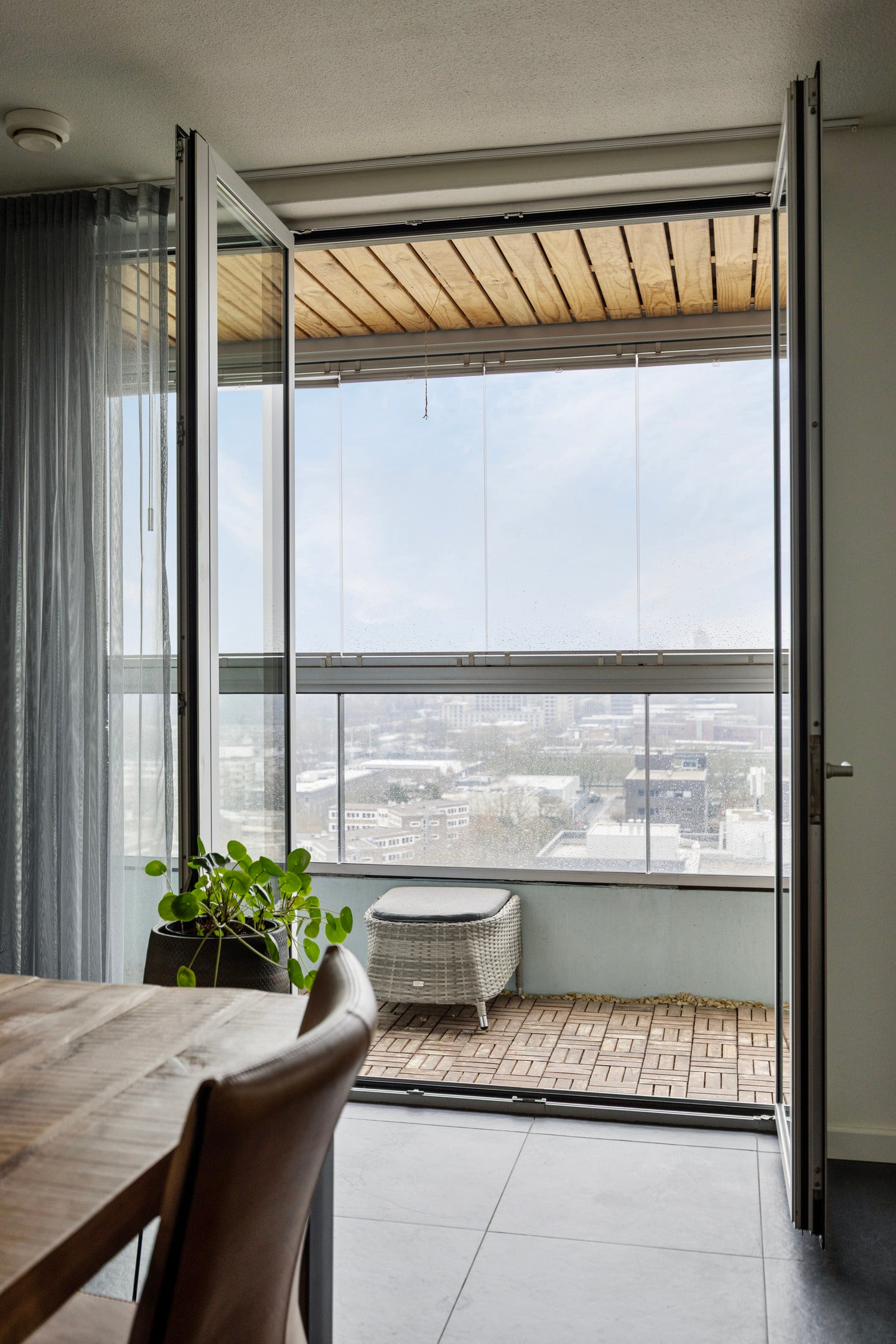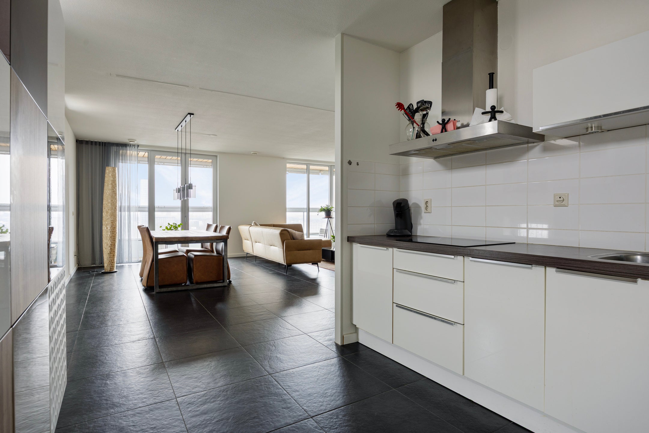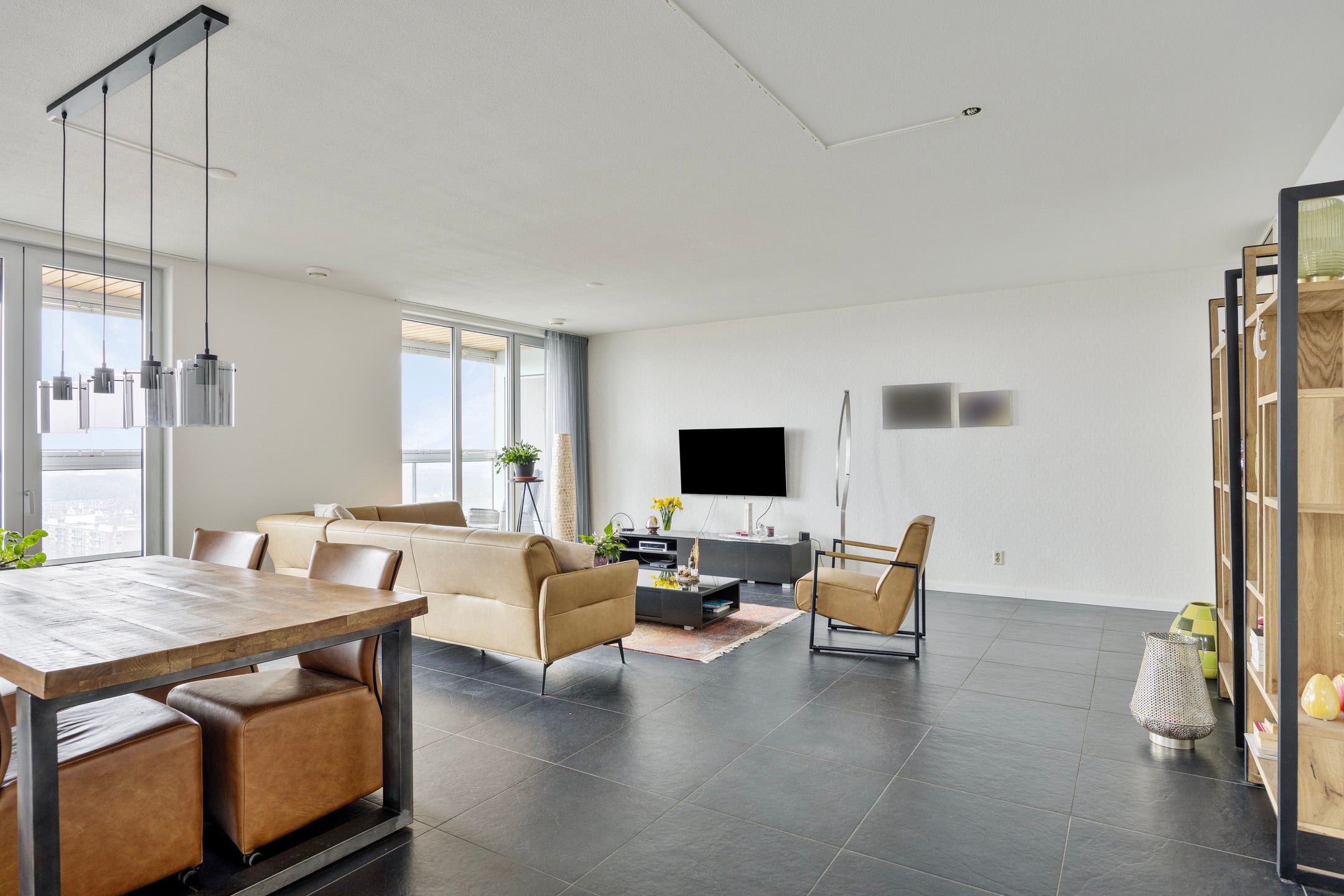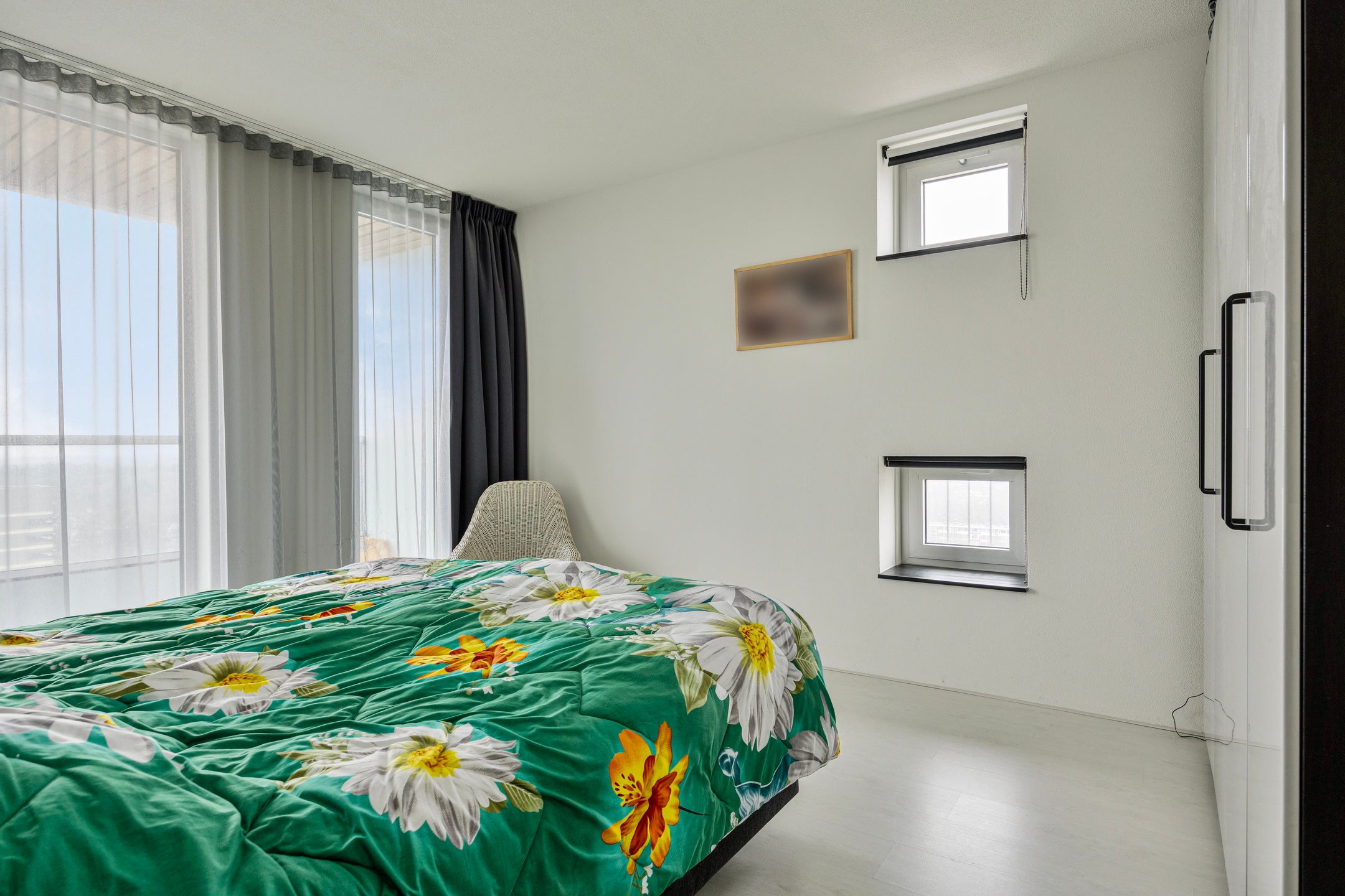 Op de 14e verdieping van het moderne complex aan Professor de Moorplein 546 in Tilburg vind je een ruim, instapklaar appartement van ca. 105 m² met twee slaapkamers en twee balkons. Je geniet van prachtig uitzicht op de stad, met ochtendzon bij het ontbijt en avondzon bij een glas wijn. Het appartement beschikt over een eigen parkeerplaats in de ondergrondse garage en ligt centraal, boven de Albert Heijn en vlakbij het winkelcentrum Westermarkt en het station Tilburg Universiteit. Binnen verwelkomt de hal je in een lichte woonkamer met grote ramen. De halfopen keuken is praktisch ingericht, en beide slaapkamers hebben toegang tot een balkon. De badkamer is voorzien van een inloopdouche en dubbele wastafel. Met een energielabel A en vloerverwarming geniet je hier van comfort en duurzaamheid.