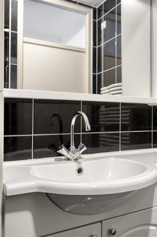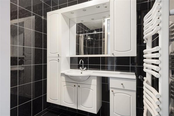 De goed onderhouden badkamer in dit appartement laat niets te wensen over. Uitgerust met een strak wastafelmeubel en een ruime douche, heeft deze ruimte alles wat je nodig hebt voor een ontspannen start (of afsluiting) van je dag. Opgeruimd, fris en modern; dit is de plek waar je met plezier wat extra tijd doorbrengt.