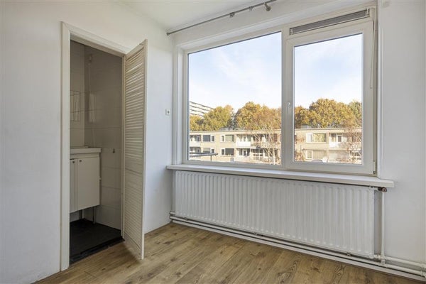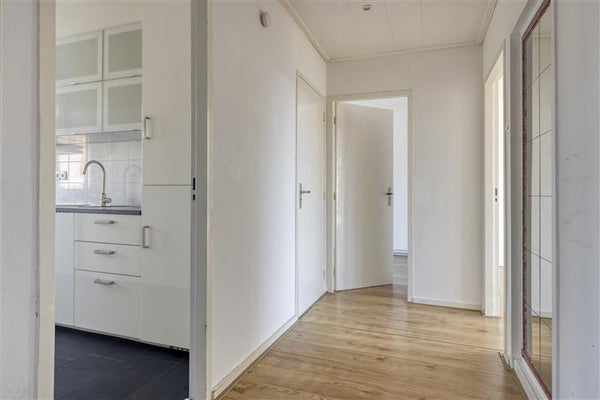 - De portiekwoning heeft een woonoppervlakte van 71 m² en beschikt over 3 kamers, waarvan 2 slaapkamers;