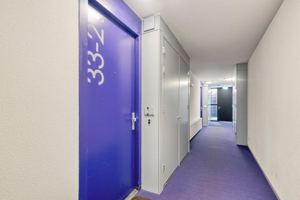 - De galerijflat heeft een woonoppervlakte van 33 m² en beschikt over 2 kamers, waarvan 1 slaapkamer;