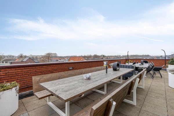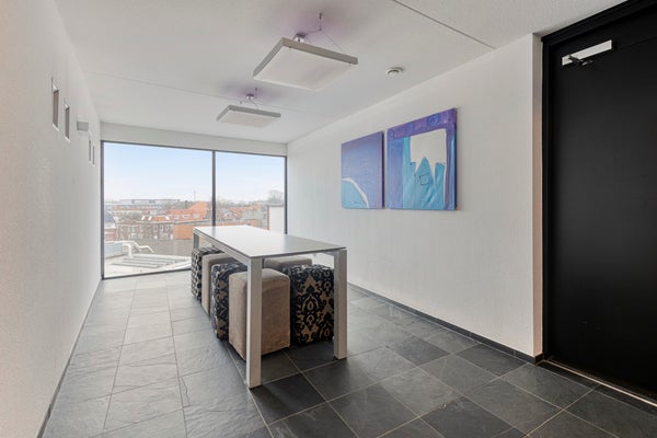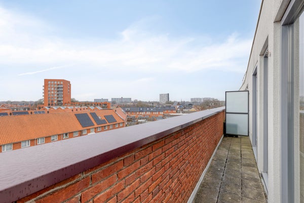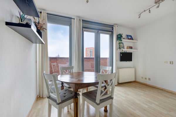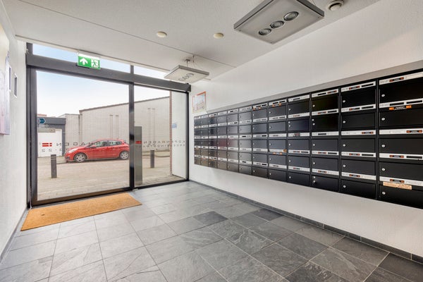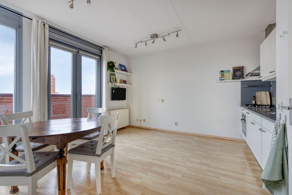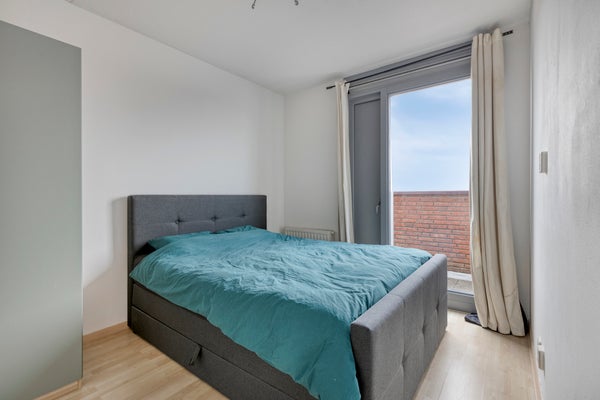 Dit tweekamerappartement op de bovenste verdieping in het complex Kopenhagen biedt niet alleen een privé parkeerplaats en een balkon, maar ook toegang tot diverse gezamenlijke voorzieningen. De woonkamer, vierkant van vorm, heeft grote ramen met tuindeuren naar het balkon, terwijl de open keuken is uitgerust met inbouwapparatuur. De slaapkamer is ruim en de badkamer beschikt over een inloopdouche en wastafel. Het complex heeft een moderne uitstraling met een ontvangstruimte, loungeruimtes en een dakterras. Gelegen nabij het stadshart, station en uitvalswegen, is dit appartement ideaal voor starters. De hoofdentree is netjes, en het appartement zelf is gedeeltelijk gestoffeerd.