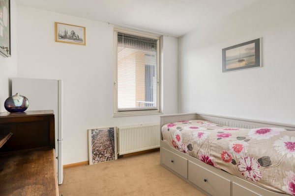 - De portiekflat heeft een woonoppervlakte van 90 m² en beschikt over 3 kamers, waarvan 2 slaapkamers;