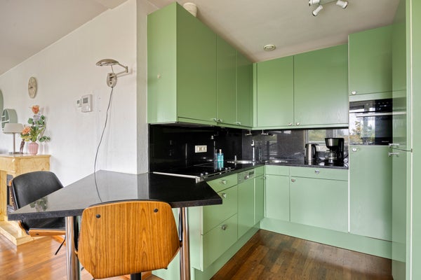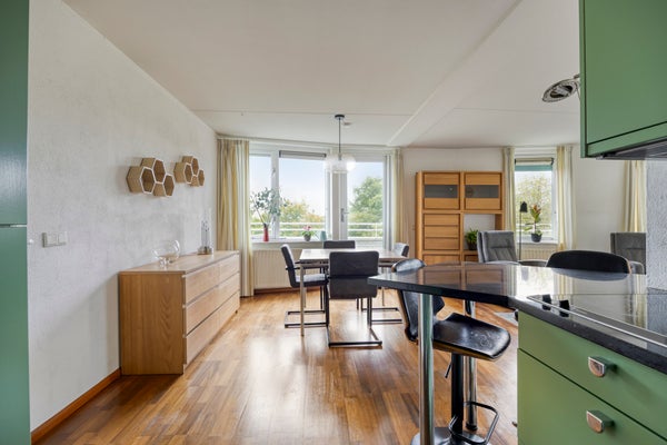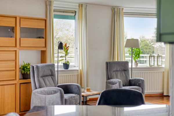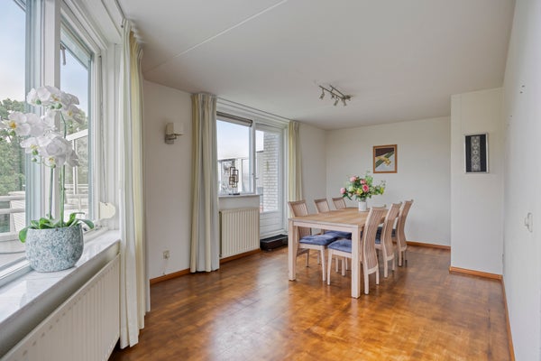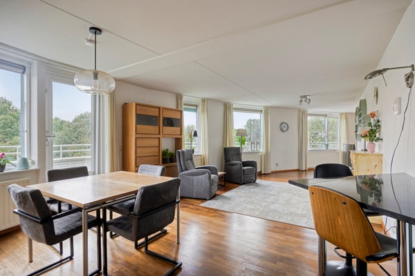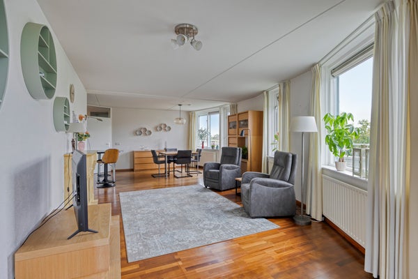- De portiekflat heeft een woonoppervlakte van 105 m² en beschikt over 3 kamers, waarvan 2 slaapkamers;