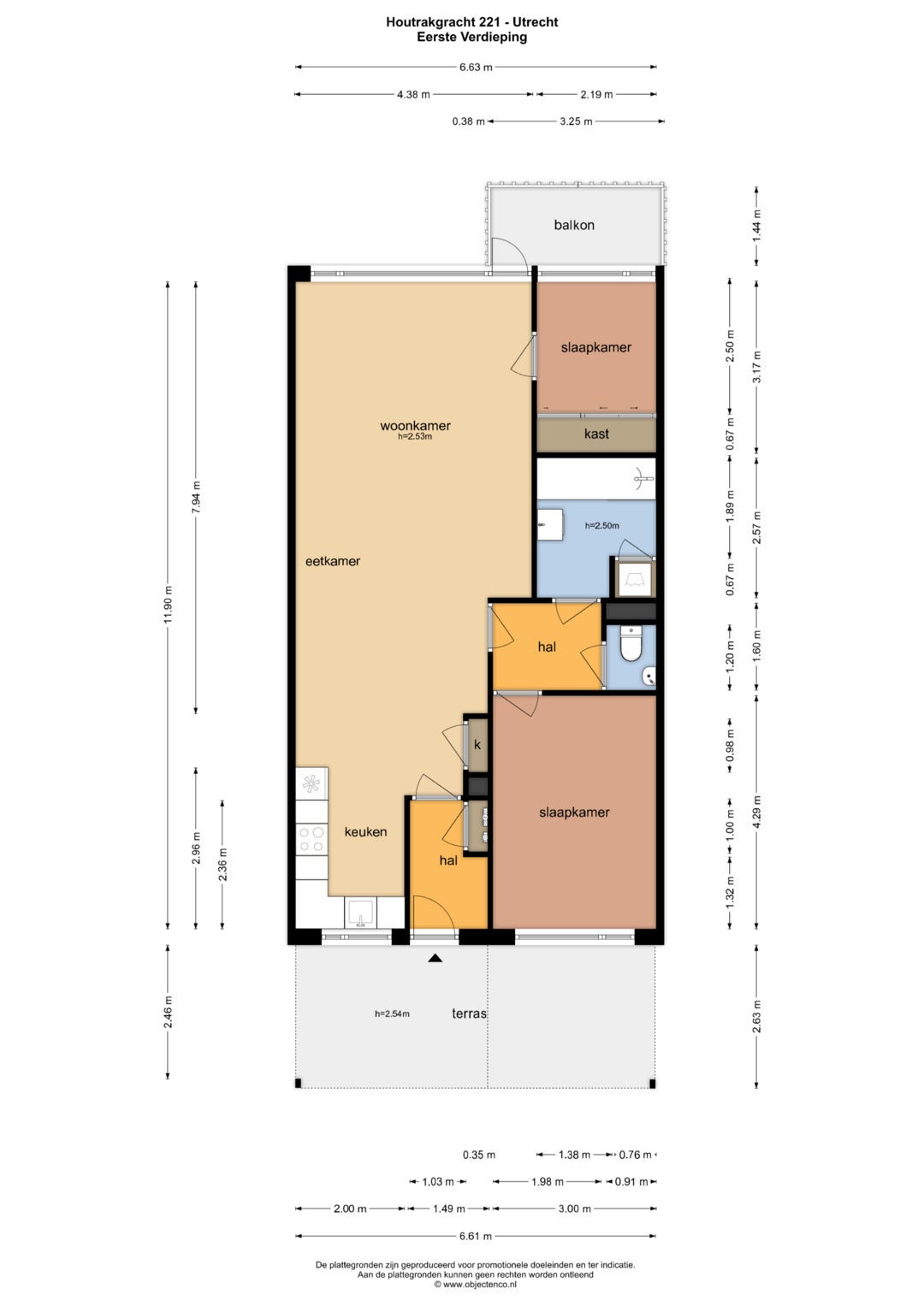 - De galerijflat heeft een woonoppervlakte van 78 m² en beschikt over 3 kamers, waarvan 2 slaapkamers;