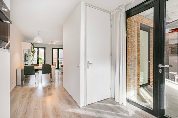 - De portiekflat heeft een woonoppervlakte van 64 m² en beschikt over 2 kamers, waarvan 1 slaapkamer;