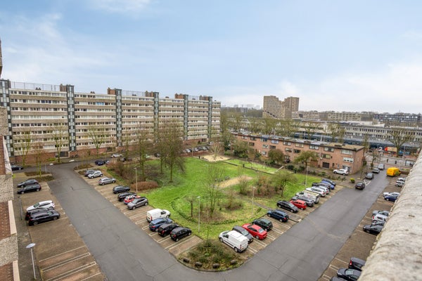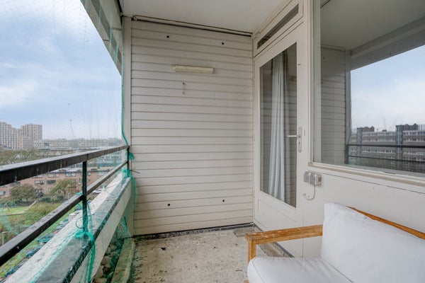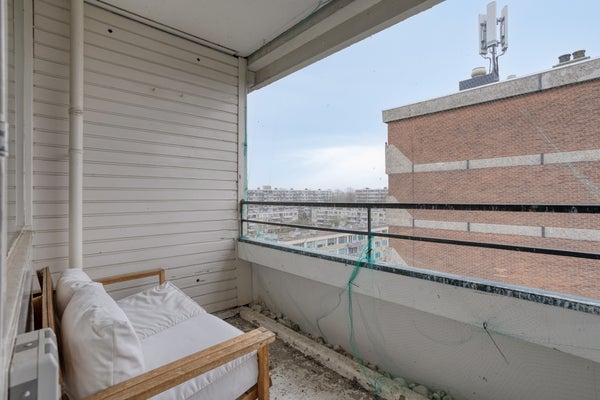 Het balkon grenst aan een slaapkamer en vormt een fijne plek om even tot rust te komen. Met een fijn uitzicht over de buurt kunt u heerlijk ontspannen.