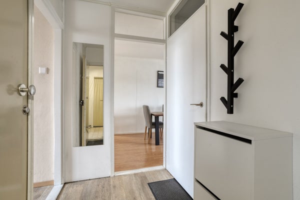 Via de gezamenlijke entree met brievenbussen en intercominstallatie betreedt u het complex, waar u met de lift of trap naar de woning gaat. Eenmaal binnen komt u in de hal, met voldoende plek voor een kapstok of opbergmeubel. Vanuit hier ontvouwt de woning zich op natuurlijke wijze, met directe doorgang naar de woonkamer en de keuken.
