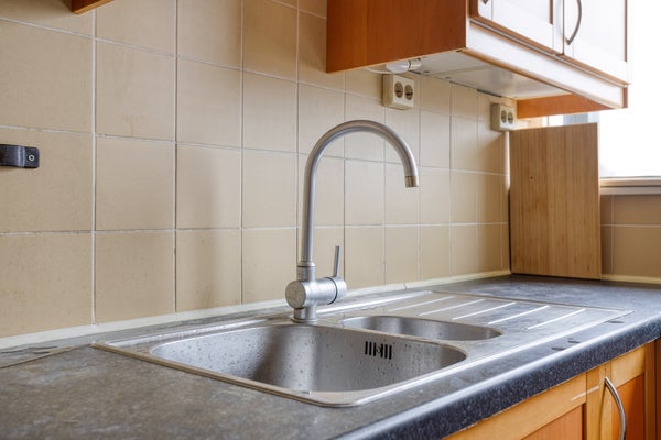 De keuken grenst aan de hal en is uitgevoerd met een L-vormig aanrecht, waardoor u beschikt over een praktische indeling en voldoende werkruimte. U vindt hier een gasfornuis, spoelbak, ingebouwde ovencombinatie, koelkast, afzuigkap en vaatwasmachine. Dankzij de vele lades en kastjes is er volop opbergruimte aanwezig. De keuken is functioneel en netjes onderhouden, met de mogelijkheid om deze geheel naar eigen smaak te moderniseren en zo uw eigen droomkeuken te realiseren.