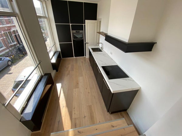 Het hele huis is voorzien van dubbel glas. De plafonds zijn destijds vernieuwd en elektra en cv zijn helemaal opnieuw aangelegd. Er is gekozen voor deuren en deurbeslag in stijl, en muren en plafonds zijn strak gestuukt. De vloeren zijn voorzien van houten planken. Ook de keuken met de royale inbouwkasten is erg modieus. Gesitueerd bij de hoge ramen aan de voorzijde maakt dit een lichte en gezellige plek waar je fluitend je uitjes fruit en samen het glas heft.