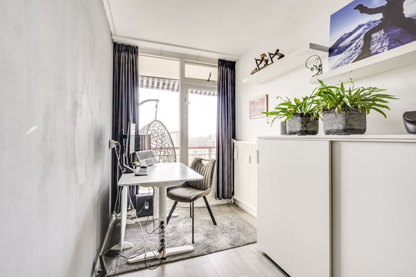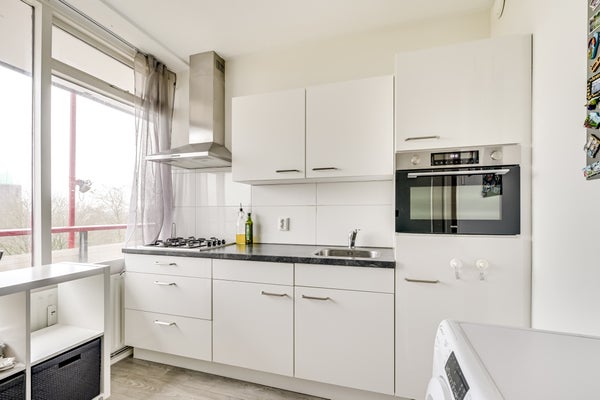 Dit lichte appartement in het groene Overvecht biedt gelijkvloers wonen met een prachtig uitzicht op Park de Watertoren. Gelegen op de 7e verdieping van een goed onderhouden gebouw, beslaat het appartement circa 80 m² en beschikt over 3 slaapkamers, een balkon op het zonnige zuidwesten en een eigen berging op de begane grond. In 2017 zijn de keuken, badkamer en toiletruimte gerenoveerd. De woonkamer van circa 25 m² opent naar het balkon, waar je in de middag en avond van de zon kunt genieten.