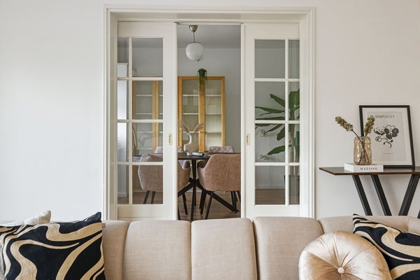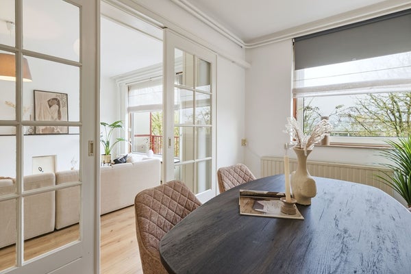 Een royaal appartement van circa 73 m² met twee slaapkamers, twee balkons en een prachtige lichtinval. Rubenslaan 81-3 is gelegen op de vierde verdieping en biedt daardoor veel privacy en een vrij uitzicht. Met een ruime woonkamer, authentieke schuifdeuren naar de eetkamer en een balkon aan zowel de oost- als westzijde, is dit een woning waar comfort en sfeer samenkomen.