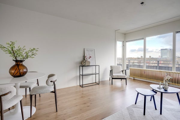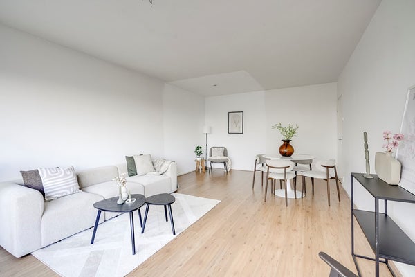 De woonkamer ligt aan de voorzijde van het appartement en is gesitueerd op het zuidoosten. Zodra je hier binnenloopt, valt het licht direct op. Er is voldoende ruimte voor een comfortabele zithoek en een eettafel. Vanuit de woonkamer stap je het balkon op, dat eveneens op het zuidoosten ligt. Hier geniet je van de ochtendzon en de eerste middagstralen, een heerlijke plek om de dag rustig te beginnen of juist in het weekend uitgebreid buiten te zitten.