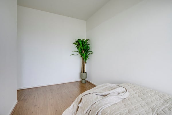 Ook de twee kleinere slaapkamers liggen aan de voorzijde en delen de zonnige zuidoostligging. Eén van deze kamers heeft directe toegang tot het balkon, wat deze ruimte extra aantrekkelijk maakt als werk-, hobby- of logeerkamer. Aan de achterzijde bevindt zich de grootste slaapkamer, met voldoende ruimte voor een tweepersoonsbed en een royale kast.