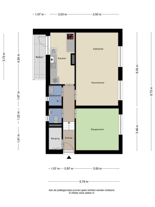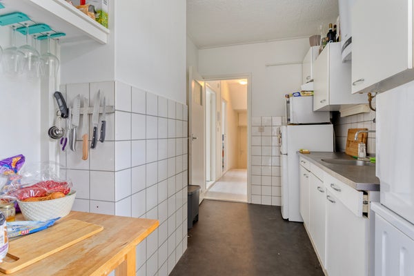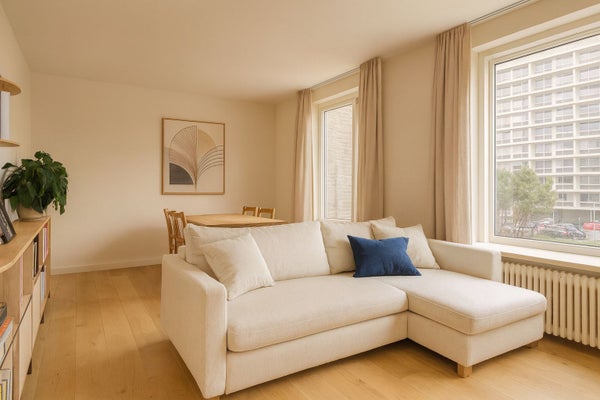 - De portiekflat heeft een woonoppervlakte van 56 m² en beschikt over 3 kamers, waarvan 1 slaapkamer;