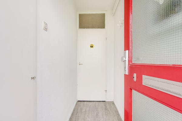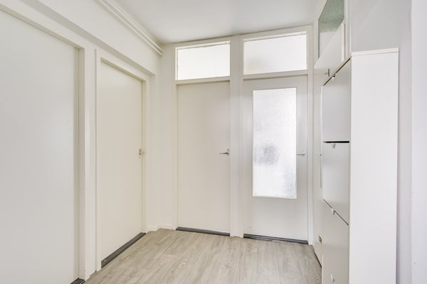 Terwijl je over de galerij loopt, geniet je van het mooie uitzicht op de groene woonomgeving. Bij nummer 181 loop je naar binnen en sta je in het eerste deel van de hal. Hier is de meterkast en voor een kapstok is genoeg plek. Het tweede deel van de hal biedt toegang tot alle ruimtes van dit lichte appartement.