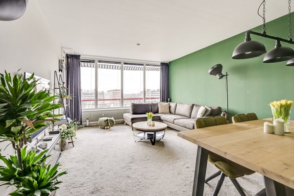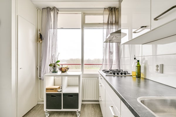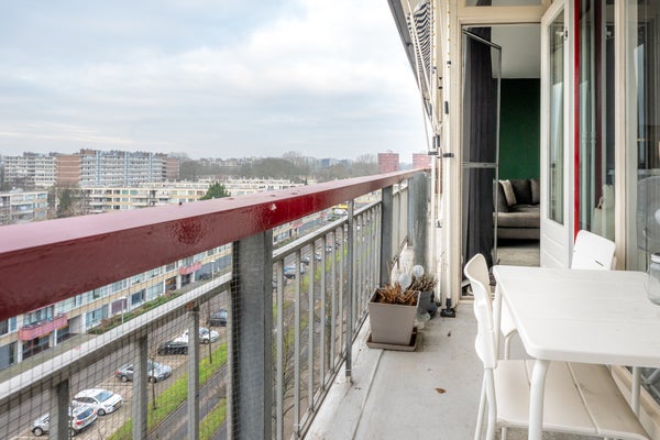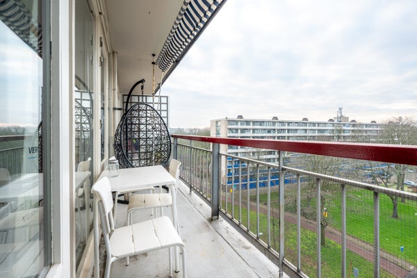 Met een ligging op het zuidwesten is het balkon een heerlijke plek om van de zon te genieten. Niet alleen in de middag, maar ook tijdens het avondeten geniet je van de aangename warmte. Je ziet niet alleen omliggende appartementengebouwen, maar ook veel groen. Wordt dit de plek waar je gaat borrelen met vrienden of familie?