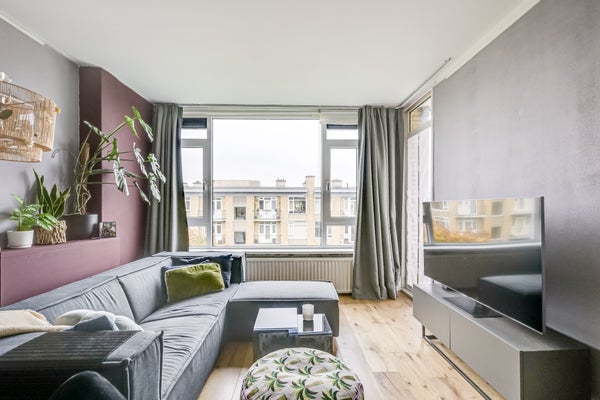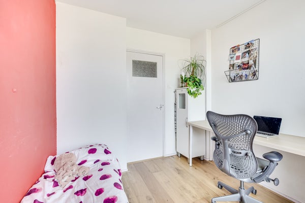 - De portiekflat heeft een woonoppervlakte van 58 m² en beschikt over 3 kamers, waarvan 2 slaapkamers;