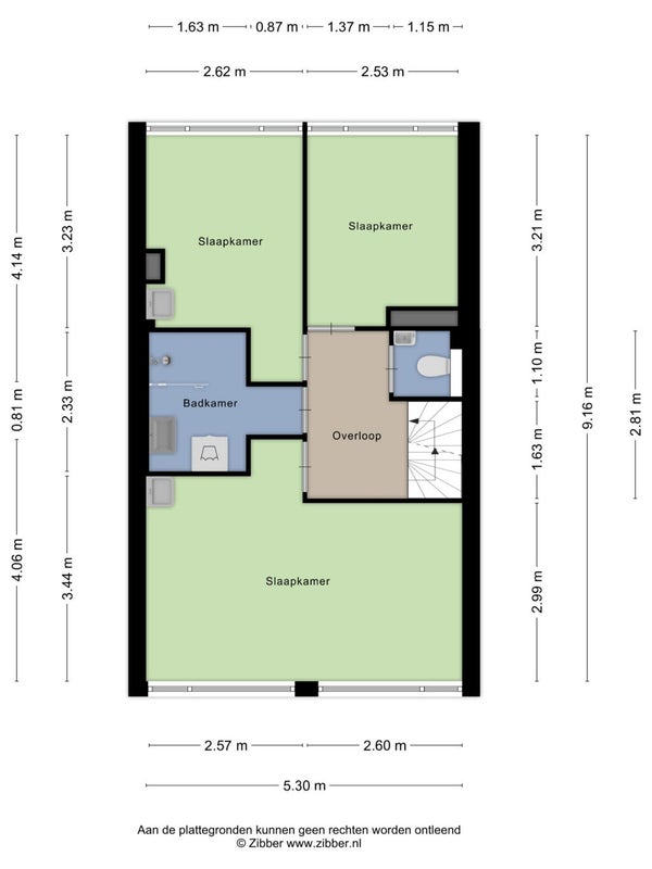 - De bovenwoning heeft een woonoppervlakte van 116 m² en beschikt over 6 kamers;