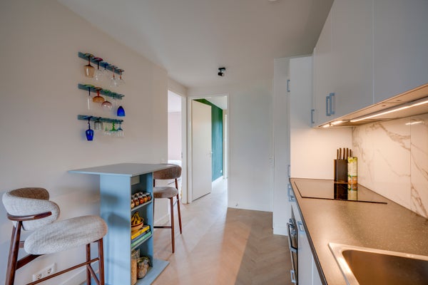 - De portiekflat heeft een woonoppervlakte van 55 m² en beschikt over 3 kamers, waarvan 2 slaapkamers;