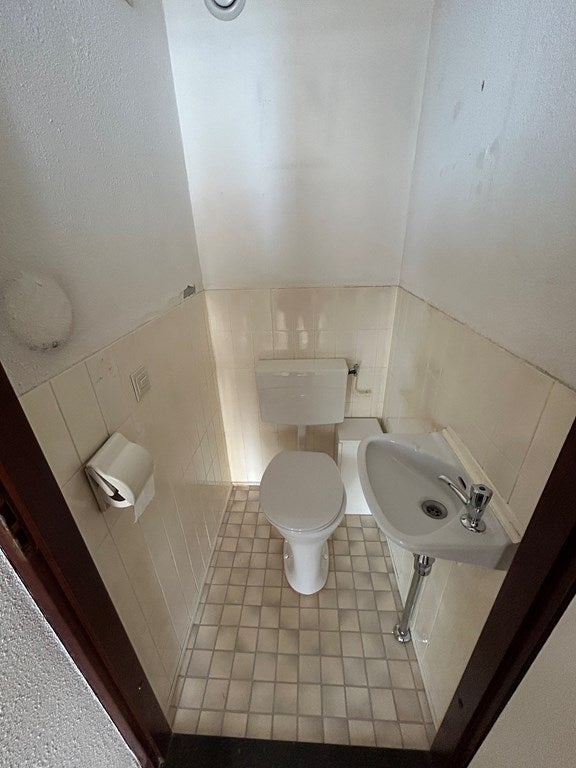 Aparte toiletruimte 1,10 x 0,90 met novilon, duoblok en wastafel.