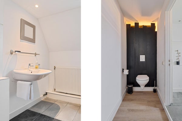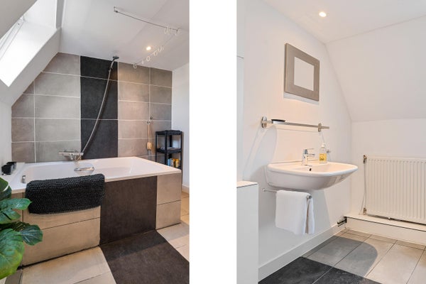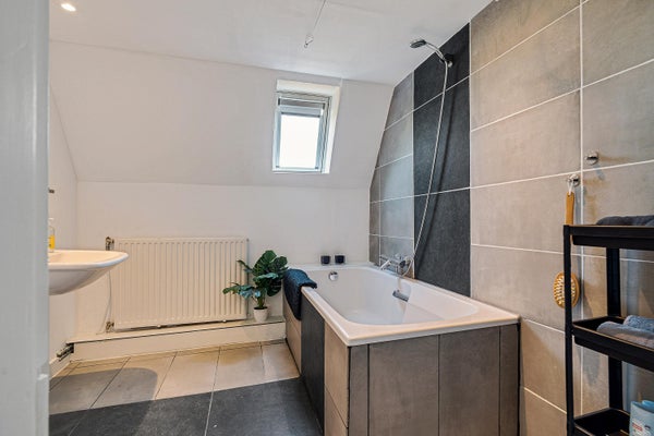 De tweede badkamer is voorzien van douche, toilet en wastafel. Ook bevindt zich hier de standplaats cv-installatie (2014, huur).