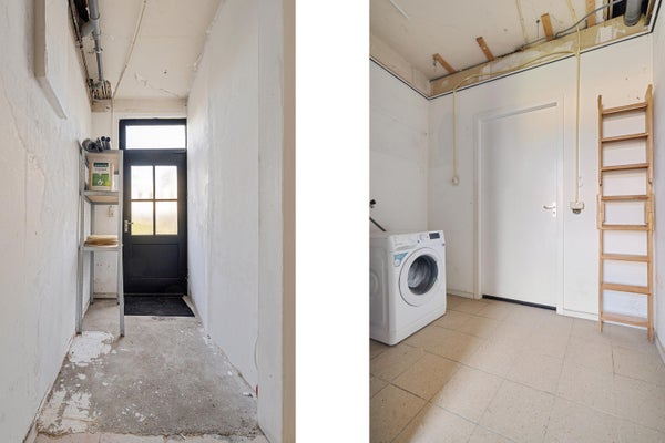 Via de entree/hal met moderne meterkast is een praktische bergruimte met witgoedaansluitingen te bereiken. Via de wasruimte is de tuin toegankelijk.