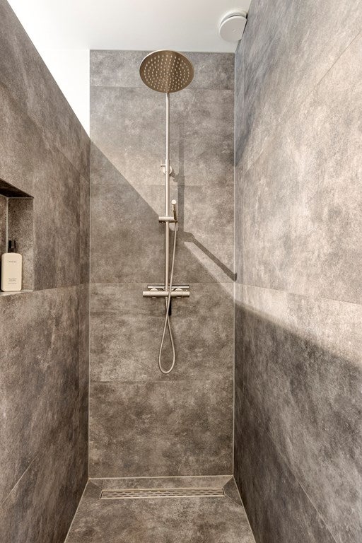 Directe toegang tot de luxe, in 2024 verbouwde badkamer met royale inloopdouche, design wastafelmeubel en toilet