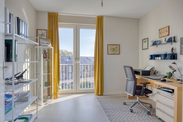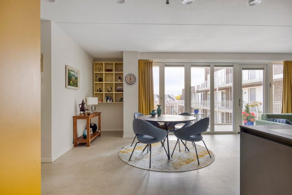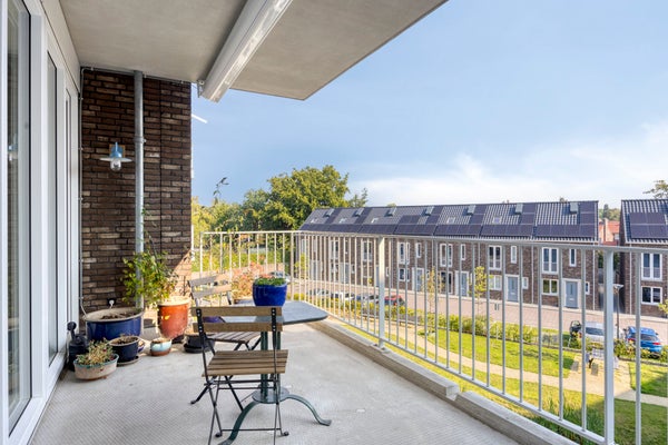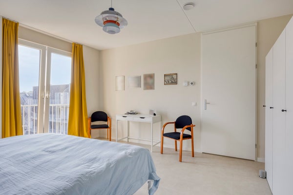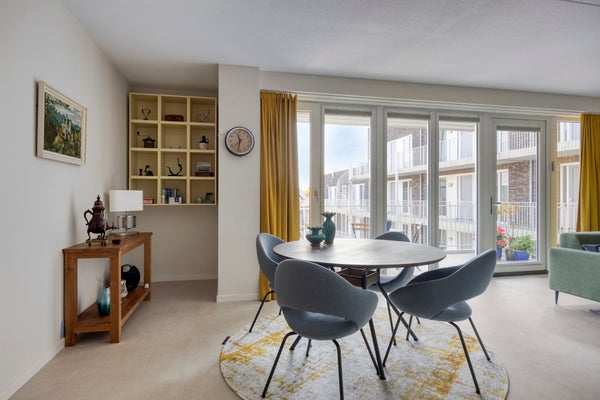 - De portiekflat heeft een woonoppervlakte van 107 m² en beschikt over 3 kamers, waarvan 2 slaapkamers;