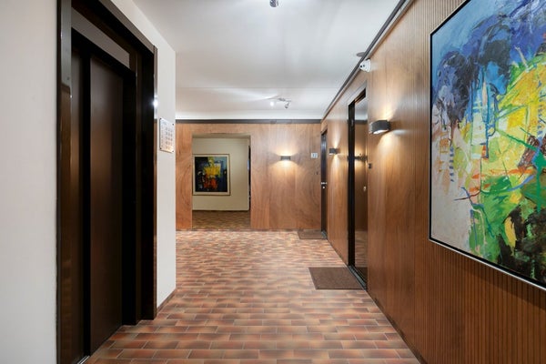 Entree met bellentableau en brievenbussen. Binnenkomst in nette, ruime hal met toegang tot de lift en de trapopgang.