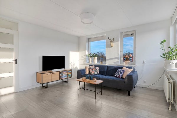 - De portiekflat heeft een woonoppervlakte van 60 m² en beschikt over 3 kamers, waarvan 2 slaapkamers;