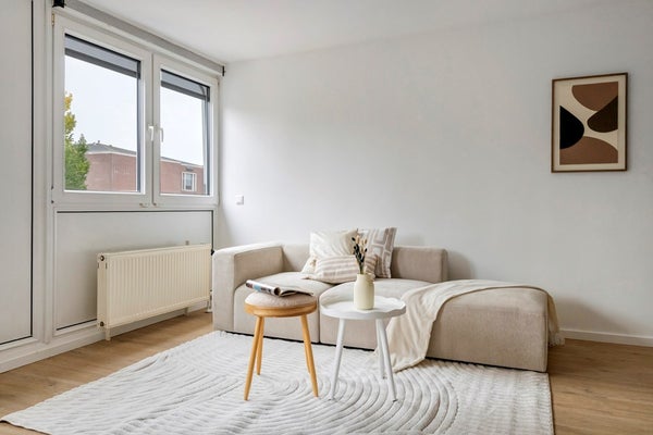 - De portiekflat heeft een woonoppervlakte van 55 m² en beschikt over 2 kamers, waarvan 1 slaapkamer;