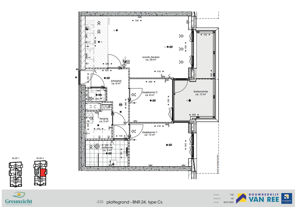 Greunzicht wordt gerealiseerd in de nieuwe en groene Veenendaalse wijk Groenpoort. Dit project bestaat uit 42 appartementen met royale balkons verdeeld over twee trapsgewijs oplopende gebouwen die onder het maaiveld verbonden worden met een parkeergarage. De daktuin tussen de twee gebouwen nodigt uit om te ontmoeten en zorgt samen met plantenbakken aan de gevels voor een groene woonbeleving.