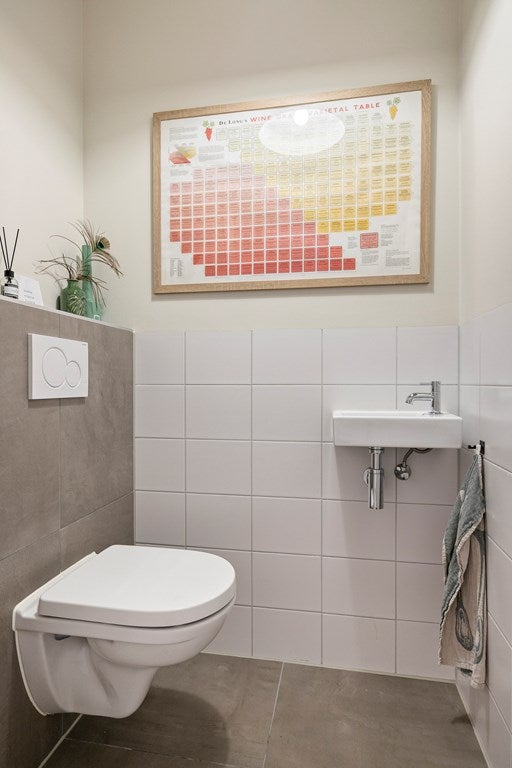 Through the elegant entrance, you enter the spacious hallway, providing access to all rooms and immediately creating a sense of comfort and overview. The hall contains the meter cupboard and a stylish toilet with a modern wall-mounted toilet and fountain.
