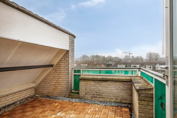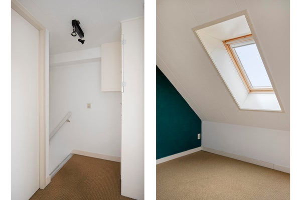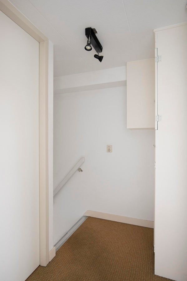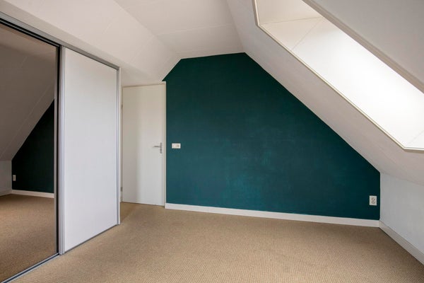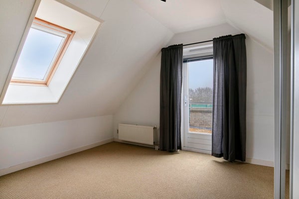 Overloop met toegang tot de ruime slaapkamer van ca. 12 m², voorzien van vloerbedekking en een praktische inbouwkast. Vanuit de slaapkamer heeft u directe toegang tot het dakterras van ca. 7 m², een fijne plek om buiten te zitten en te ontspannen.