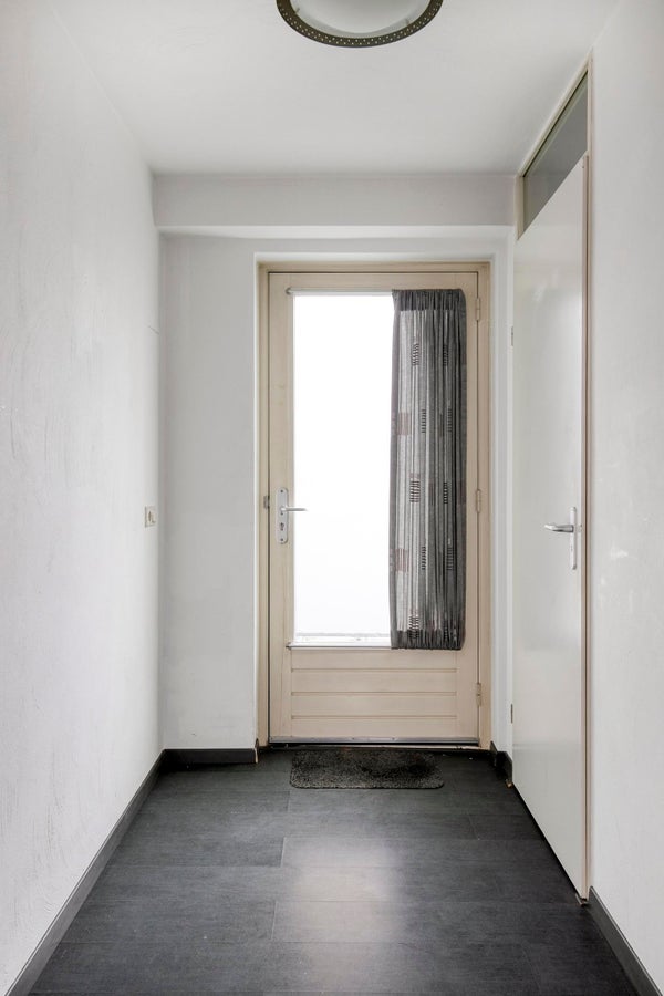 Entree van het appartement via een hal die toegang biedt tot alle vertrekken. Hier bevindt zich een separaat toilet met fonteintje en de trapopgang naar de derde verdieping.