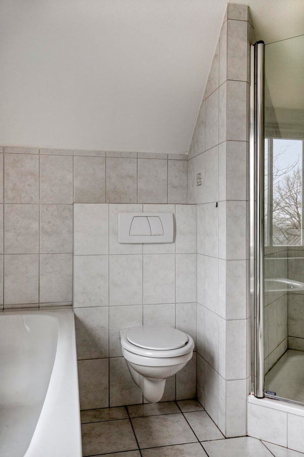 De verzorgde, volledig betegelde badkamer beschikt over: