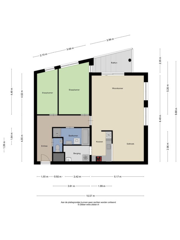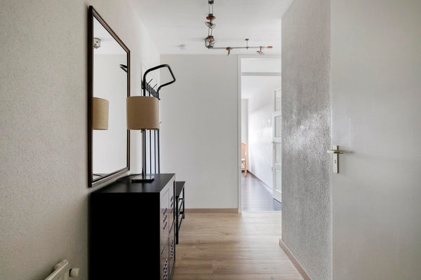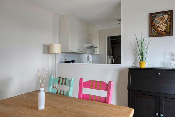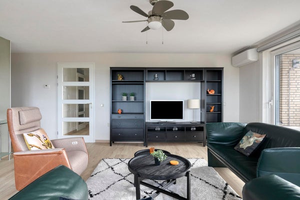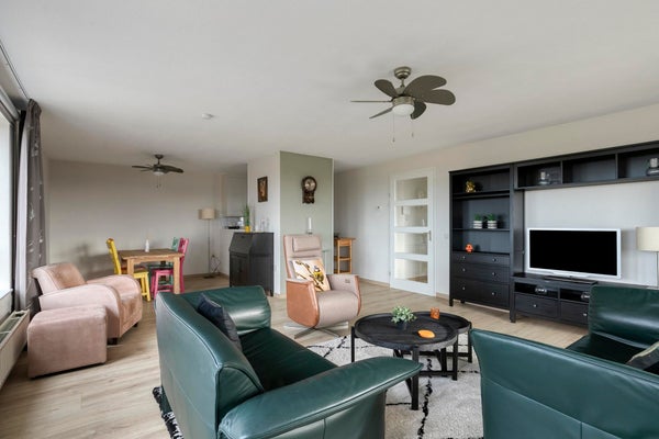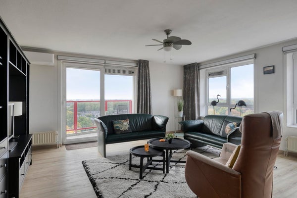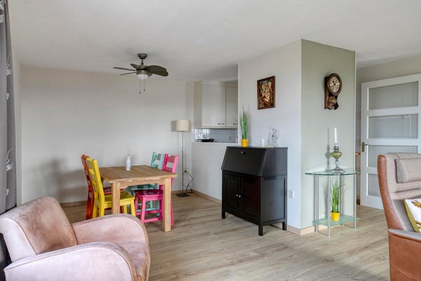 - De portiekflat heeft een woonoppervlakte van 93 m² en beschikt over 3 kamers, waarvan 2 slaapkamers;